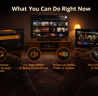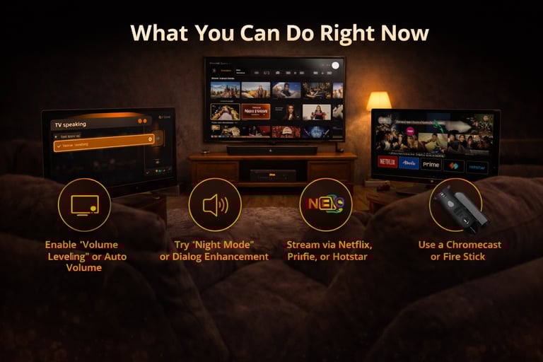 Switch to OTT streaming where possible — Netflix, Prime, and Hotstar all apply loudness normalization (-14 to -16 LUFS), creating more consistent audio