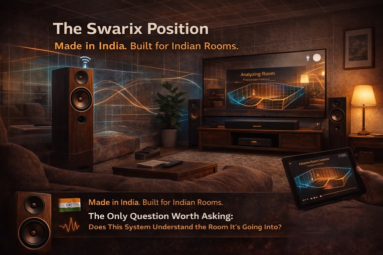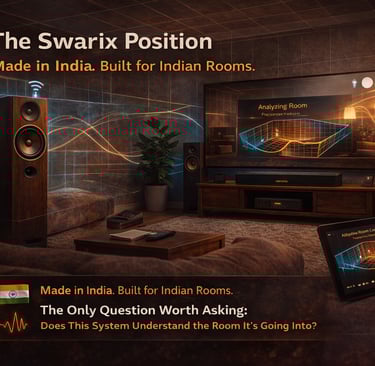 Indian homes — their dimensions, materials, ceiling heights, and acoustic challenges — shaped every design decision we made. Swarix is not a global product adapted for India. It is an Indian product built for the acoustic reality of Indian homes.
